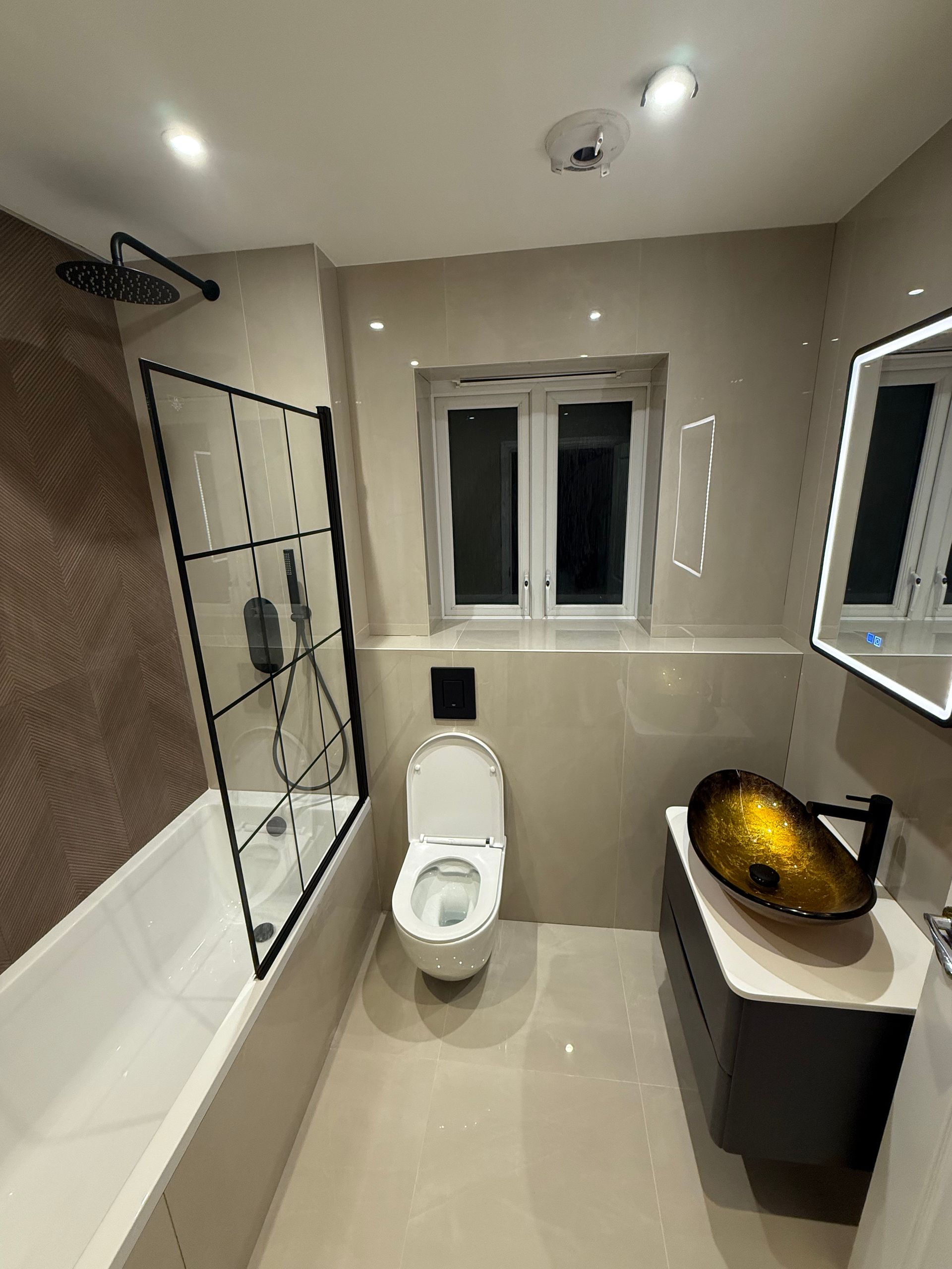 Completed a bathroom reconstruction project, delivering a modern, functional, and stylish space tailored to the client's preferences. The work involved a complete overhaul, including the removal of outdated fixtures, reconfiguring the layout for improved functionality, and updating plumbing and electrical systems. High-quality tiles, sleek fittings, and contemporary design elements were used to create a fresh, inviting atmosphere. The finished bathroom combines practicality and luxury, providing a serene and comfortable environment with durable and low-maintenance finishes.